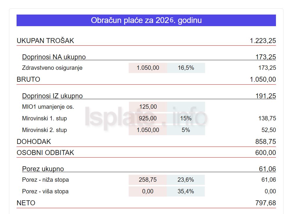 Bruto iznos od 1.050 eura ne znači gotovo ništa konkretno.